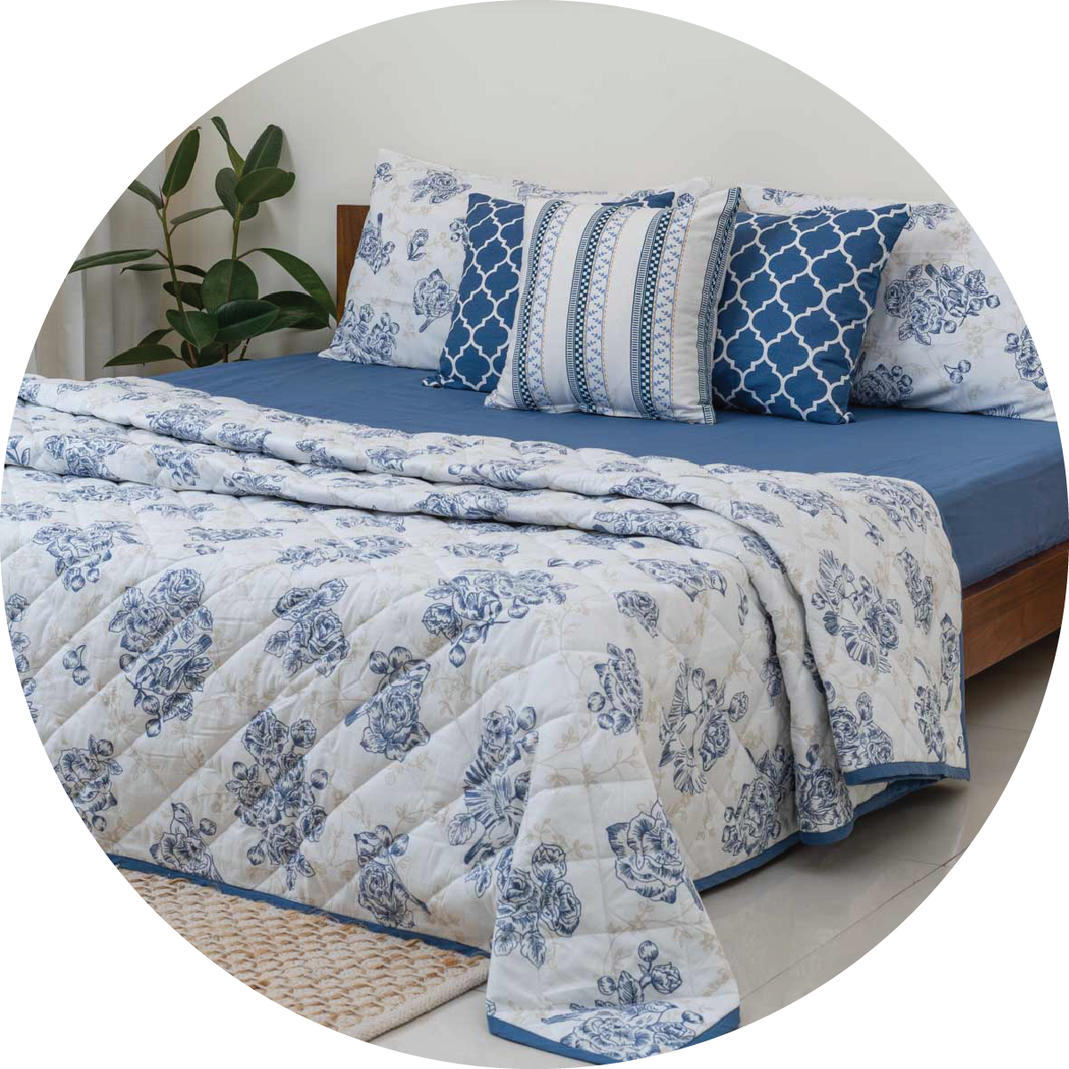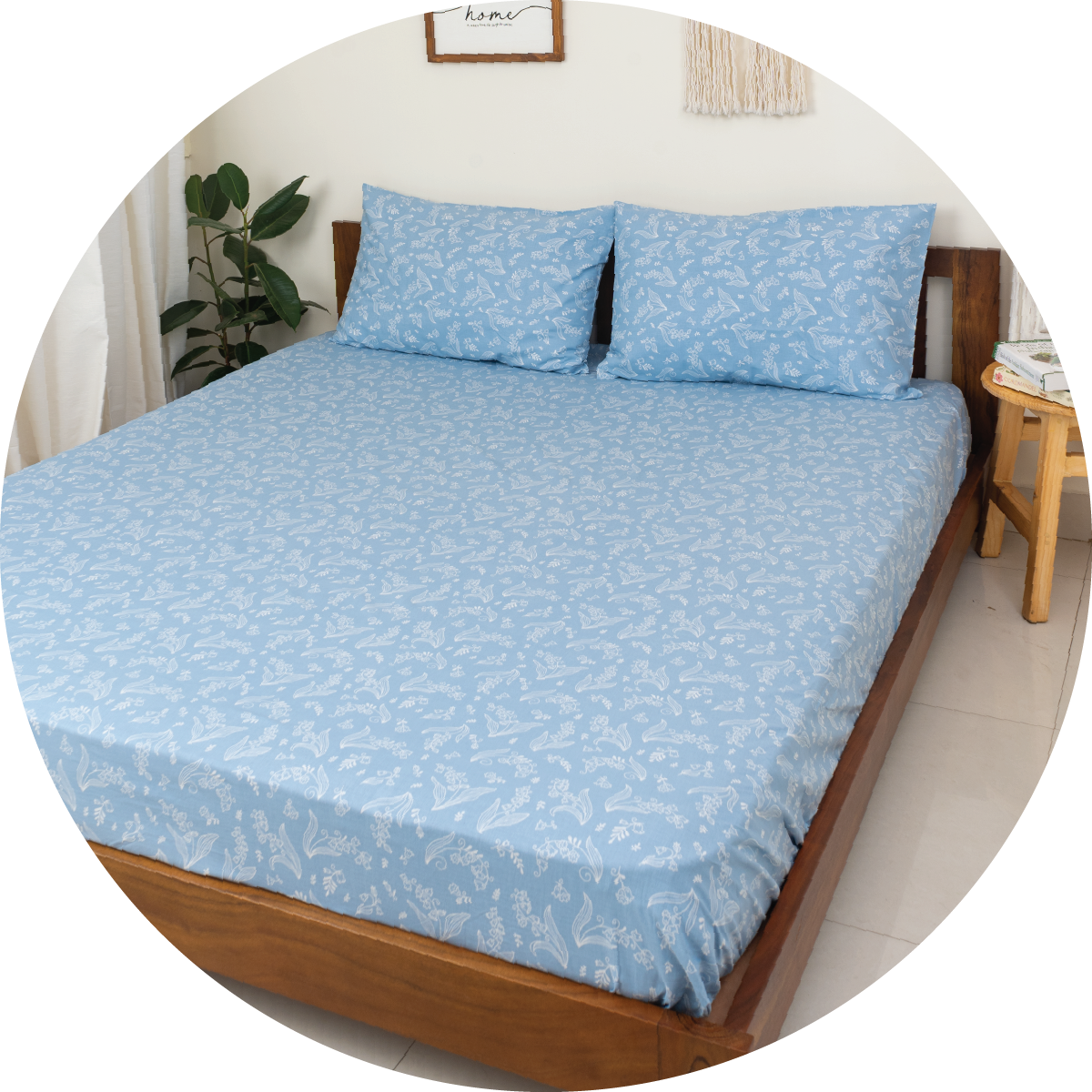Cherry Blossom Printed Cotton Flat Sheet - Cream