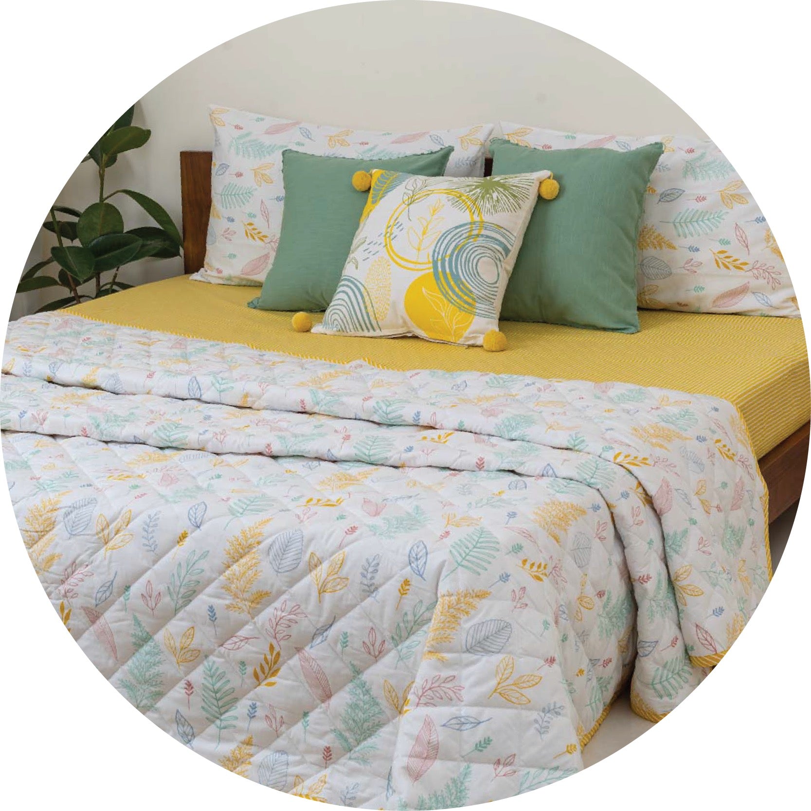 Rustling Leaves 100% cotton floral cushion cover for sofa - Green Rustling Leaves 100% cotton floral cushion cover for sofa - Green