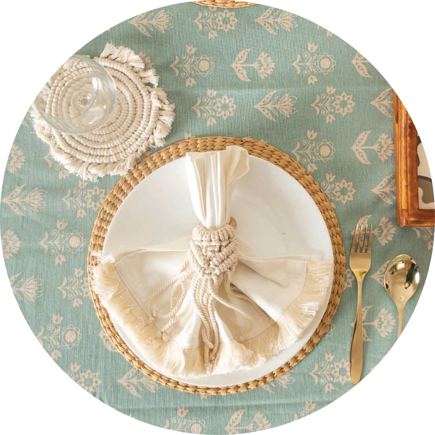 Dahlia Printed 100% cotton floral table cloth for 4 seater or 6 seater dining - Nile Blue Dahlia Printed 100% cotton floral table cloth for 4 seater or 6 seater dining - Nile Blue