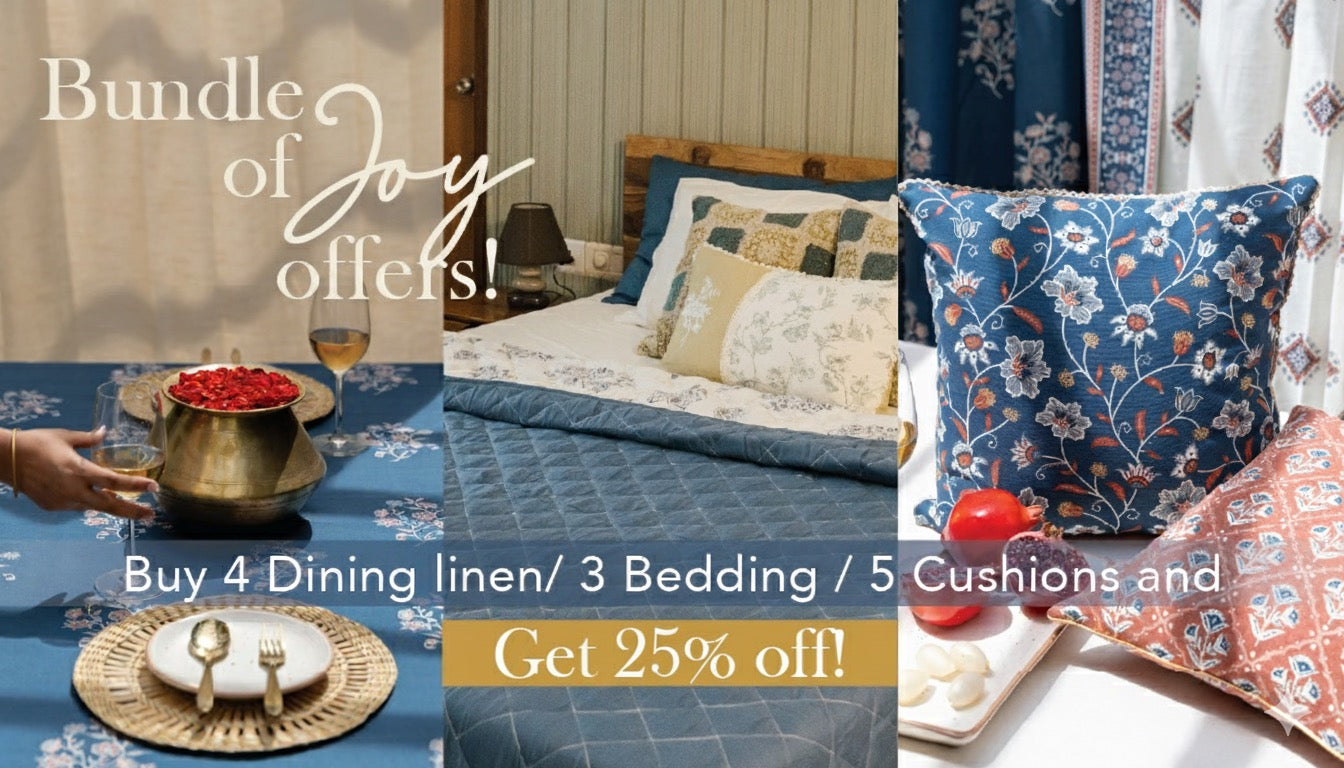 Meadows 100% cotton geomtric table runner for 4 seater or 6 seater dining - Indigo Meadows 100% cotton geomtric table runner for 4 seater or 6 seater dining - Indigo
