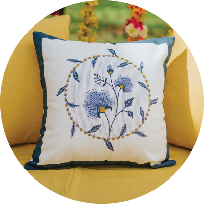 Yellow Daisy 100% cotton floral cushion cover for sofa - Yellow