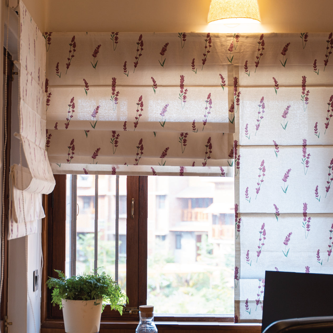 Our window blinds in Bangalore include Roman blinds with varying light-block lining options and light-filtering blinds that combine style and practicality. These blinds are perfect for modern homes where space optimization and clean design are essential.